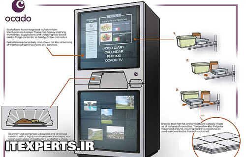 در سال 89 گروهی از محققان دانشگاه لانکاشایر مرکزی و سوپرمارکت آنلاین "اوکادو" در انگلیس تحقیقاتی را بر روی توسعه یک مدل از این یخچالهای هوشمند آینده آغاز کردند. این یخچال می تواند به طور خودکار مواد غذایی مانده و فاسد را دور بریزد و خود را تمیز کند و پس از تمام شدن مواد خوراکی، آنها را به صورت آنلاین به سوپرمارکت سفارش می دهد.